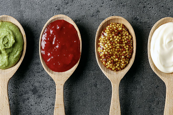 Klassische Mayonnaise, Senf, Gewürzketchup, BBQ-Saucen, würziges Balsamico-Dressing, Pesto, leckere Sour-Creme, und und und ... !